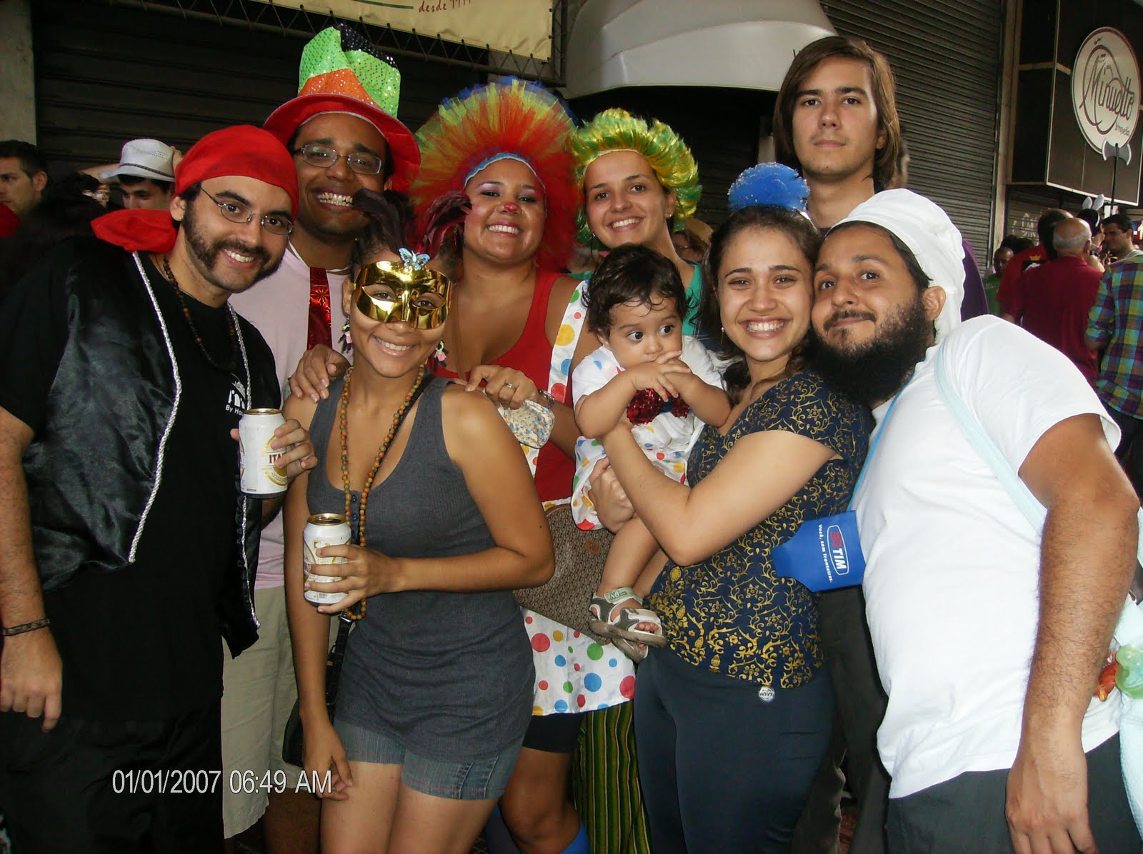 Galera tentando ir pro bloco. Repararam que a minha fantasia é igual a do fofo do Francisco. De palhaço.